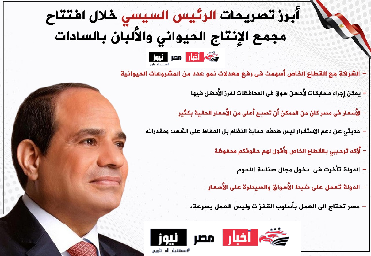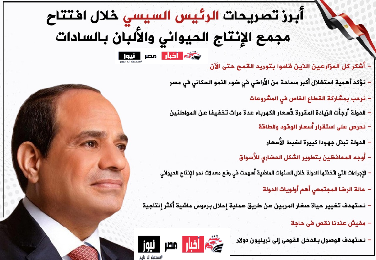أبرز تصريحات الرئيس السيسي خلال افتتاح مجمع الإنتاج الحيواني والألبان بالسادات | إنفوجراف