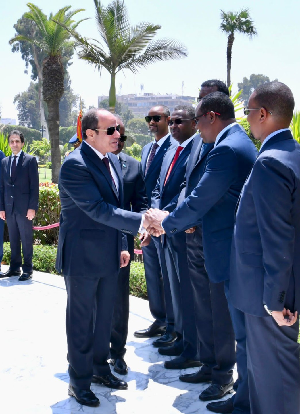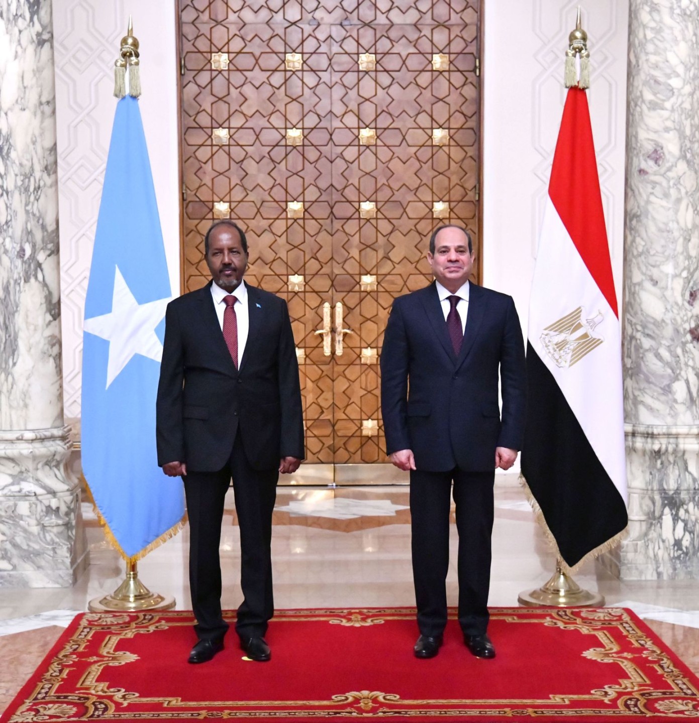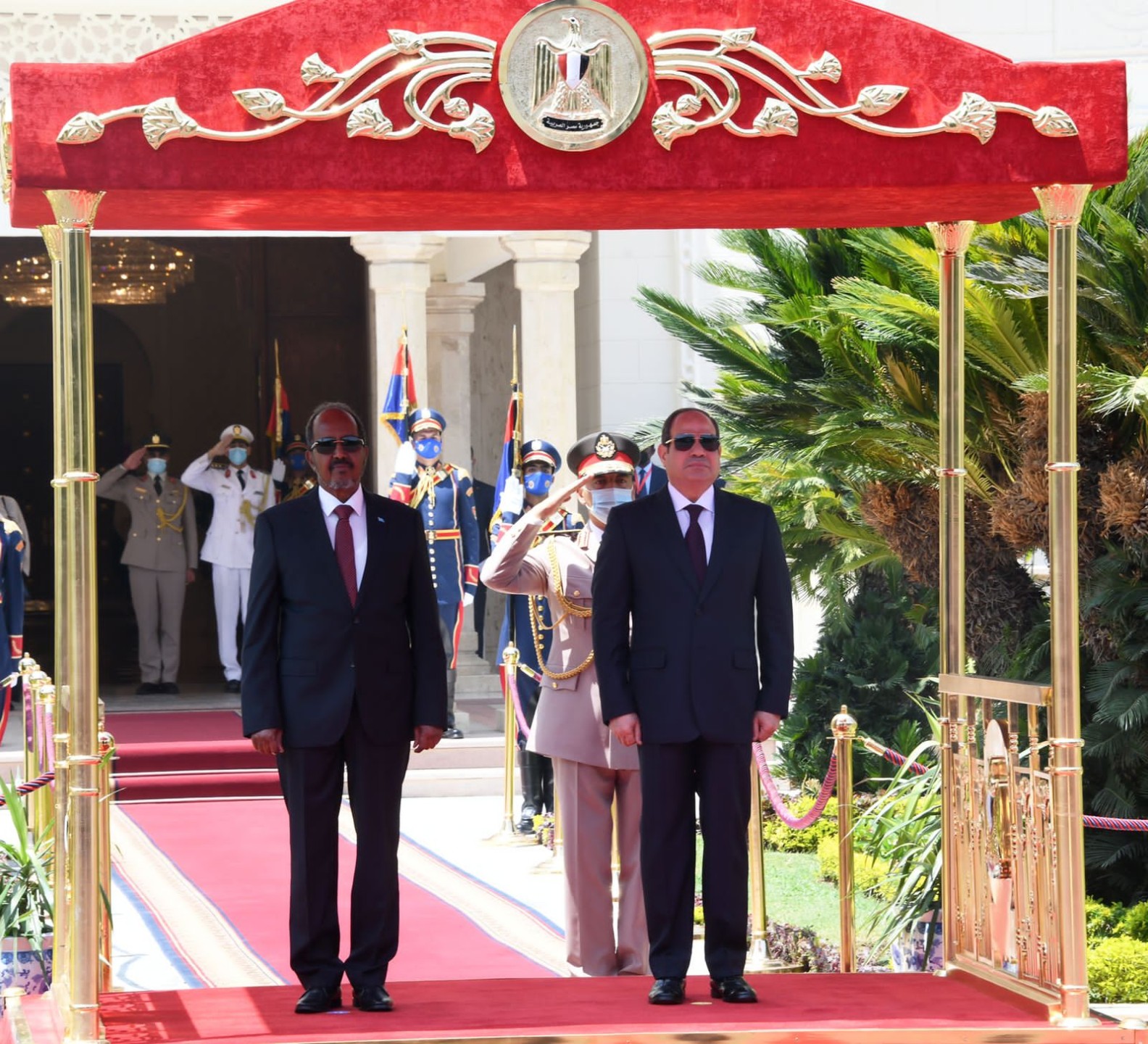 من جانبه؛ أعرب الرئيس الصومالي عن خالص تقديره لحفاوة الاستقبال، مؤكداً الحرص على تطوير التعاون مع مصر على مختلف المستويات في إطار مرحلة إعادة بناء المؤسسات الوطنية الصومالية، وذلك في ظل ما يجمع البلدين الشقيقين من علاقات تاريخية، والمكانة المتميزة التي تتمتع بها مصر في وجدان الشعب الصومالي، أخذاً في الاعتبار دور مصر التاريخي في مساندة الصومال وما تقدمه من دعم في مختلف المجالات، خاصةً في المجال التعليمي، ونشر ثقافة الإسلام الوسطي والفكر المعتدل، وكذا تنمية الكوادر البشرية الصومالية، بالإضافة إلى الثقل المحوري لمصر على صعيد صون السلم والأمن في المنطقتين العربية والأفريقية.