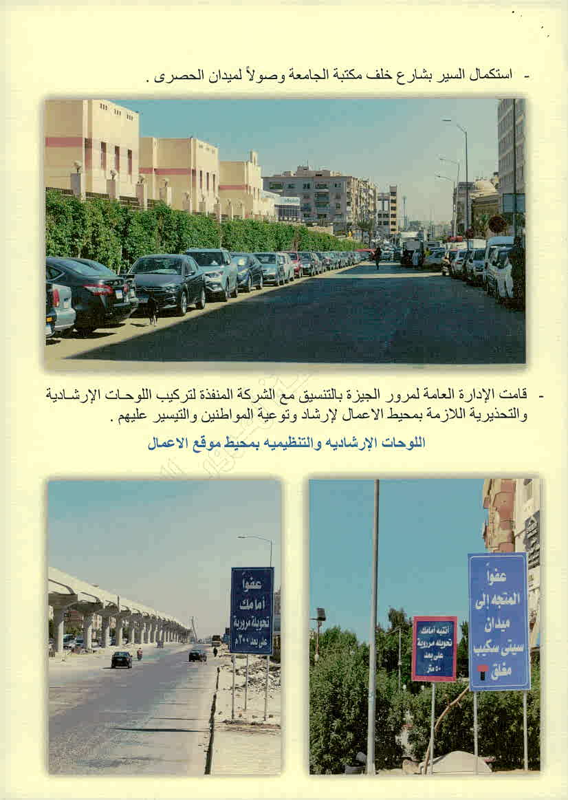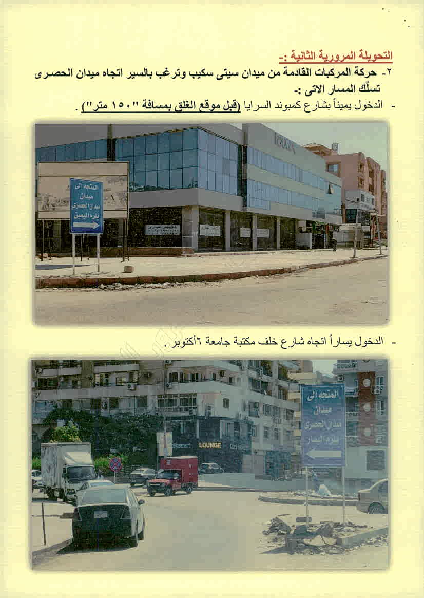 لذا قامت الادارة العامة لمرور الجيزة بالتنسيق مع جهاز مدينة ٦ أكتوبر والشركة المنفذة للتحويلات المرورية بالأتي : ـ