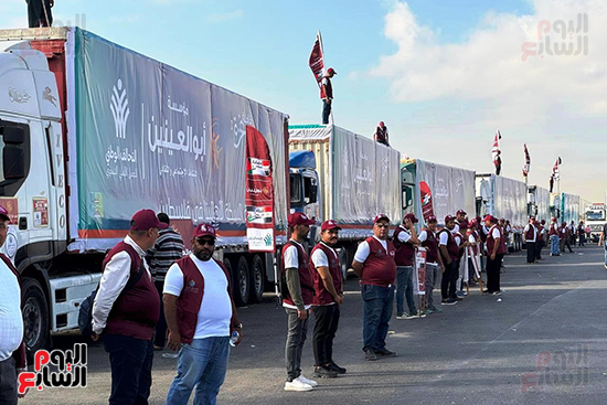 وجاء الاصطفاف تحت شعار "قافلة السلام"، بعد نجاح الجهود المصرية في تثبيت وقف إطلاق النار، وسط حضور مكثف للمتطوعين وفرق العمل الميدانية التابعة لمؤسسات التحالف، التى بدأت منذ الصباح المبكر في تجهيز وتحميل المواد الغذائية والمساعدات الإنسانية، لضمان وصولها السريع إلى الأهالي في غزة.