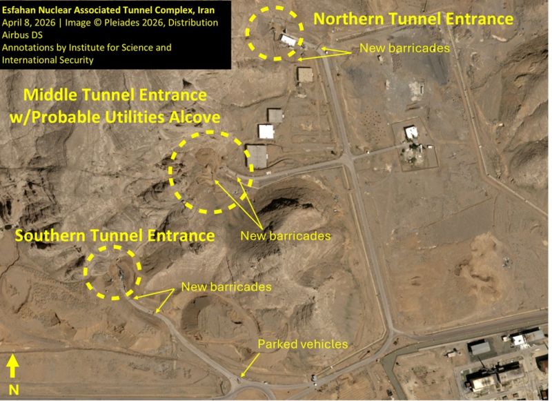 وأشار التقرير إلى أن المنشأة يُعتقد أنها تحتوي على الجزء الأكبر من اليورانيوم الإيراني المخصب، وأن مداخل الأنفاق المؤدية إليها جرى ردمها، دون تسجيل أي محاولات واضحة لإعادة فتحها حتى الآن، مع رصد وجود سيارتين متوقفتين في الموقع، ما يُشير إلى استمرار إجراءات المراقبة الأمنية.